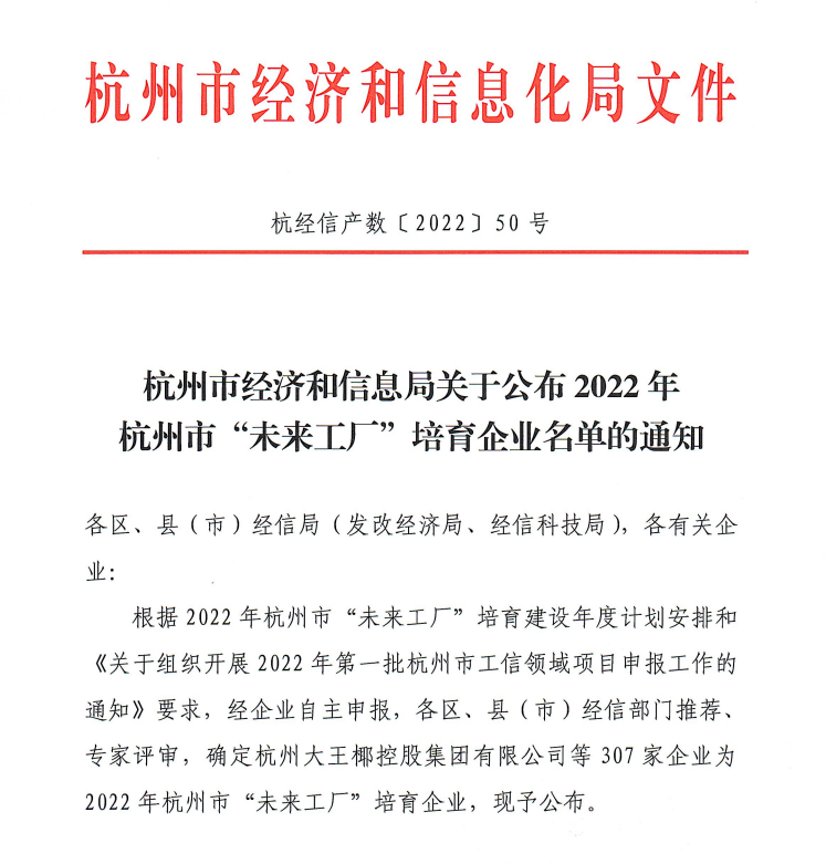 根據(jù)2022年杭州市“未來工廠”培育建設(shè)年度計劃安排和《關(guān)于組織開展2022年第一批杭州市工信領(lǐng)域項目申報工作的通知》要求,經(jīng)企業(yè)自主申報,各區(qū)、縣(市)經(jīng)信部門推薦、專家評審,浙江高泰昊能科技有限公司榮獲2022年杭州市“未來工廠”培育企業(yè)認定。