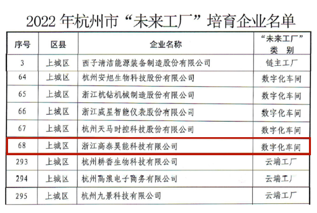 高泰昊能上榜杭州市“未來工廠”培育名單